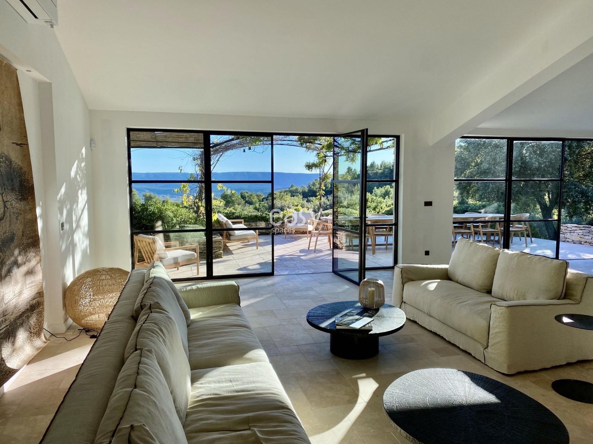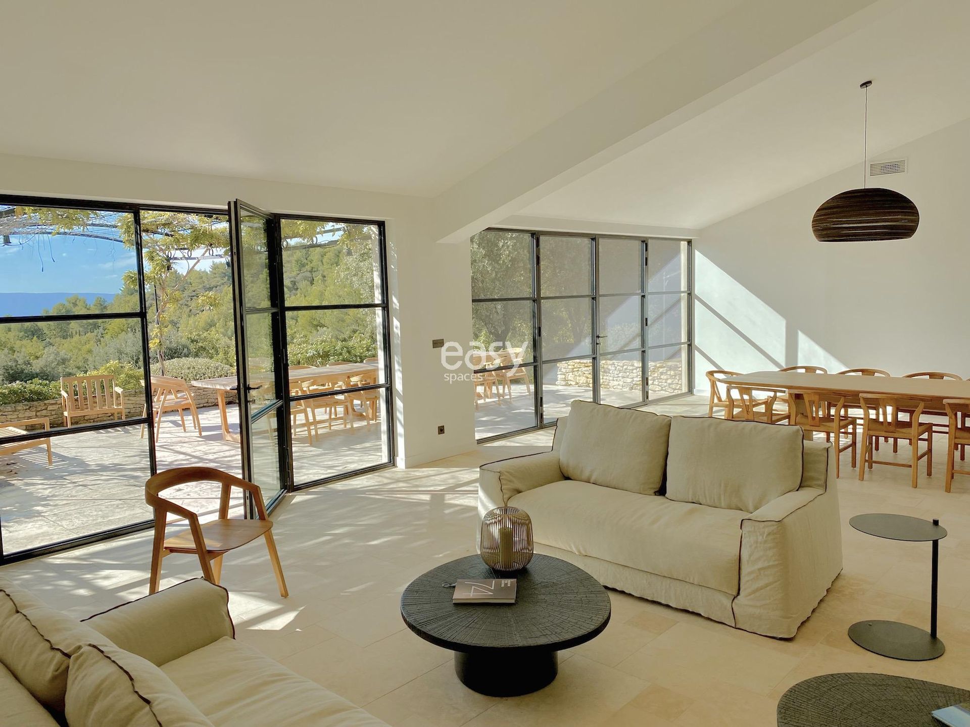 Located in Vaucluse near Avignon, this estate features a bright living room thanks to large windows, a warm and authentic atmosphere, and generous volumes. Additionally, its outdoor spaces with a heated pool and a garden with olive trees and Mediterranean plants will be perfect settings for an outdoor furniture photo shoot.