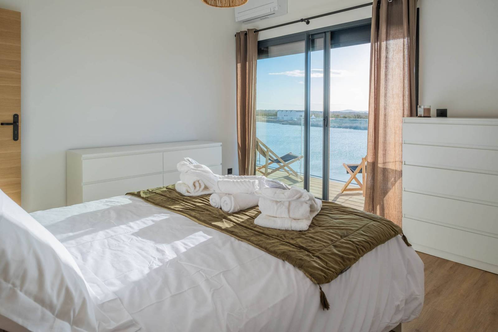 The bedrooms, spacious and bright, also benefit from an exceptional panorama. Contemporary furniture, noble materials, and neutral tones create a chic and timeless atmosphere, ideal for any type of staging or visual ambiance.