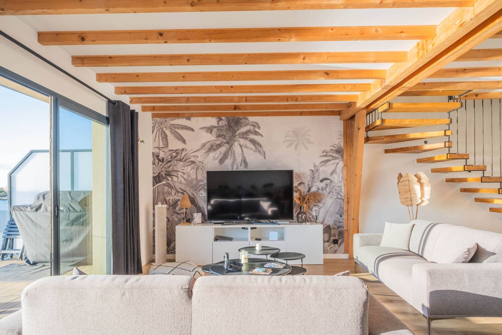Outside, the large terrace with a direct view of the beach is a major asset. Whether for a sunrise photo session, a natural light shoot, or a cocktail facing the sea, this outdoor space offers a breathtaking setting.