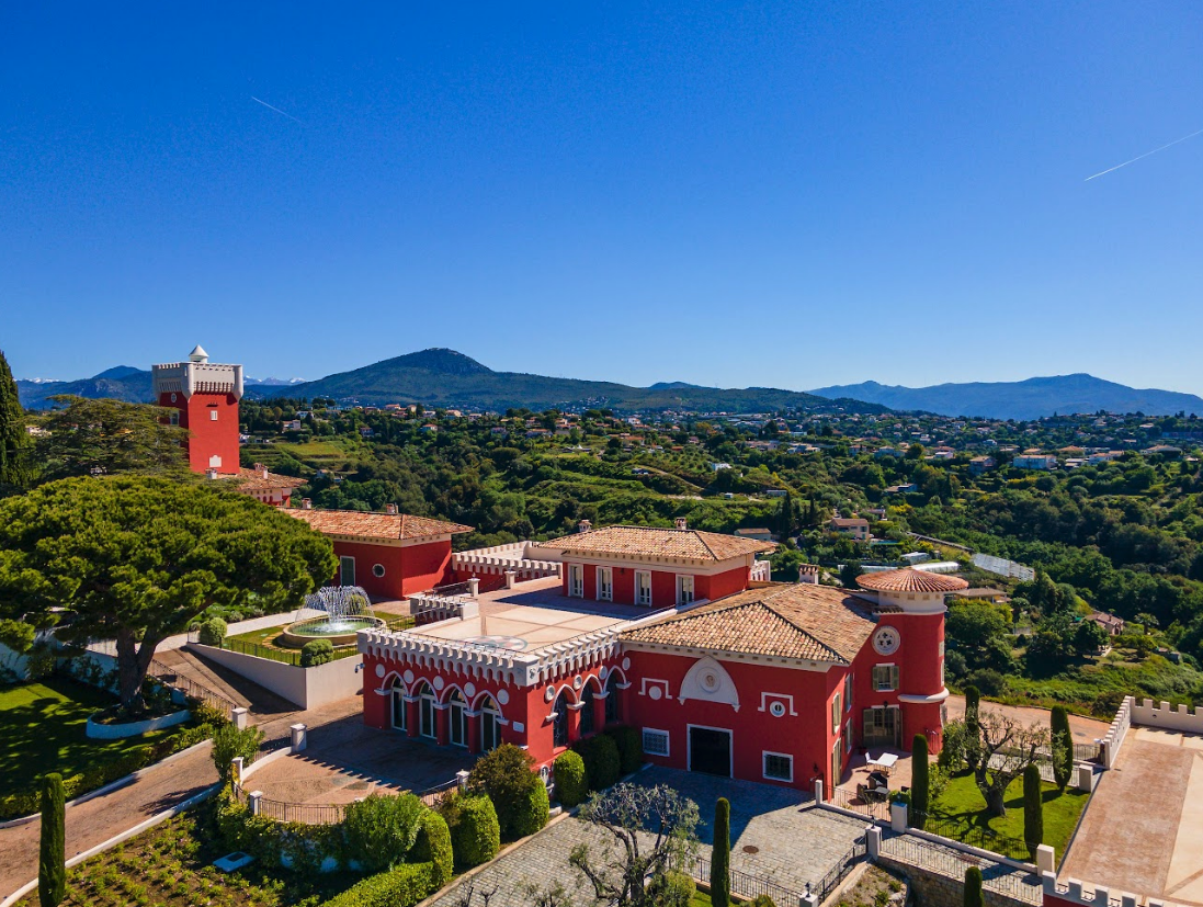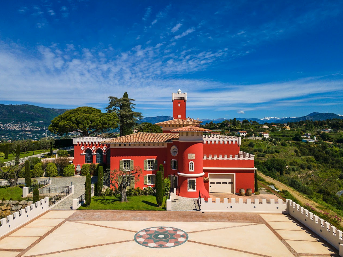 This amazing property/ castle available for rent for professional photoshoots, filming, and events is located in Nice, in an exceptional setting with spectacular panoramic views of the sea, mountains, and vineyards.