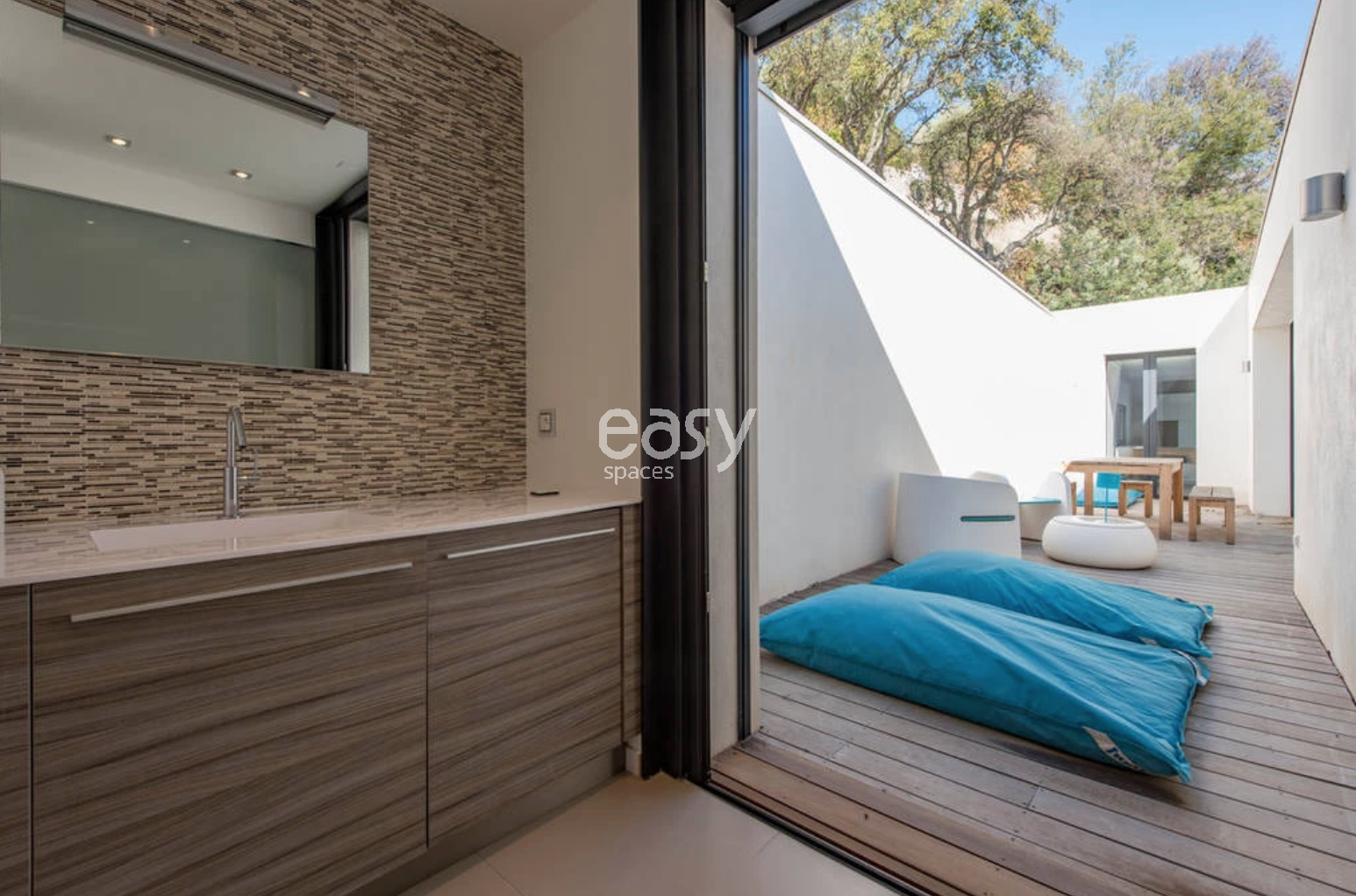 Featuring a large, very bright 100m2 living room facing the sea, minimalist decoration and a pool with panoramic view, this incredible location will be ideal for any type of photo shoot or for a film filming on the French Riviera.