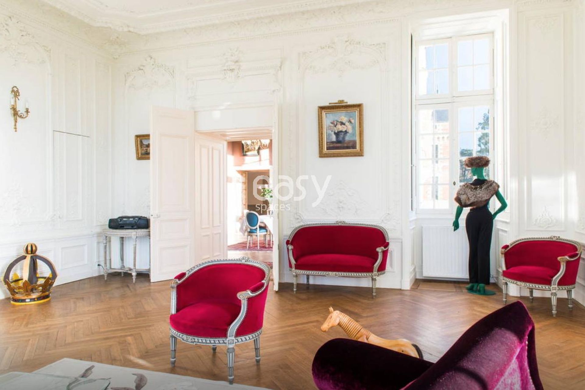 Are you searching for a rental shooting location in Nantes (44) that combines charm and functionality? Easy Spaces offers you an apartment with a unique style, featuring herringbone parquet flooring, elegant moldings, and an impressive ceiling height. This bright and refined space is the ideal place for your photo shoots, filming, or professional events.