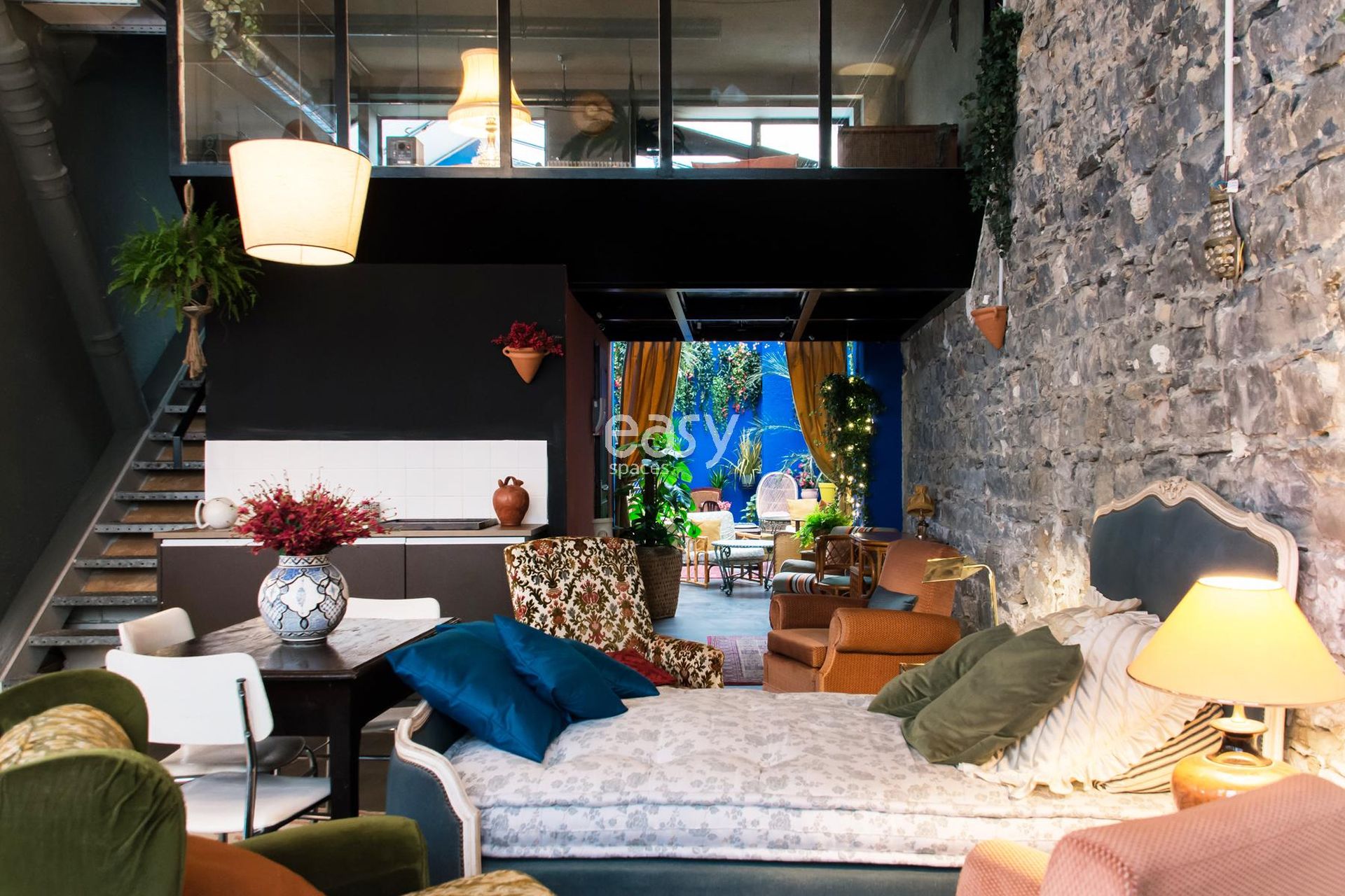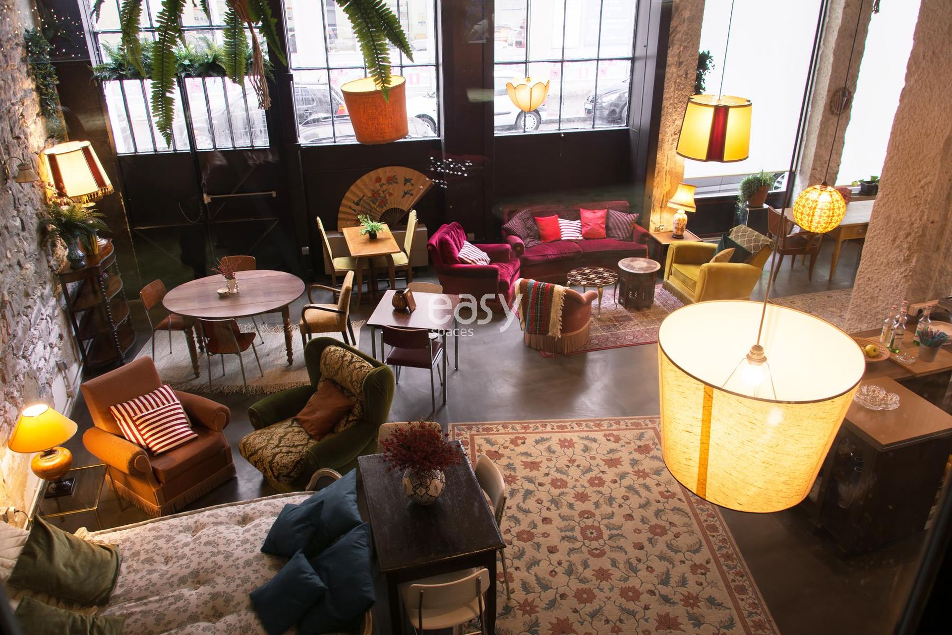 The main space combines vintage refinement and contemporary functionality. Cognac leather sofas sit alongside seventies-style armchairs, creating the atmosphere so sought after by art directors and communication agencies. Every corner tells a story, every angle offers a new perspective for your visual creations.