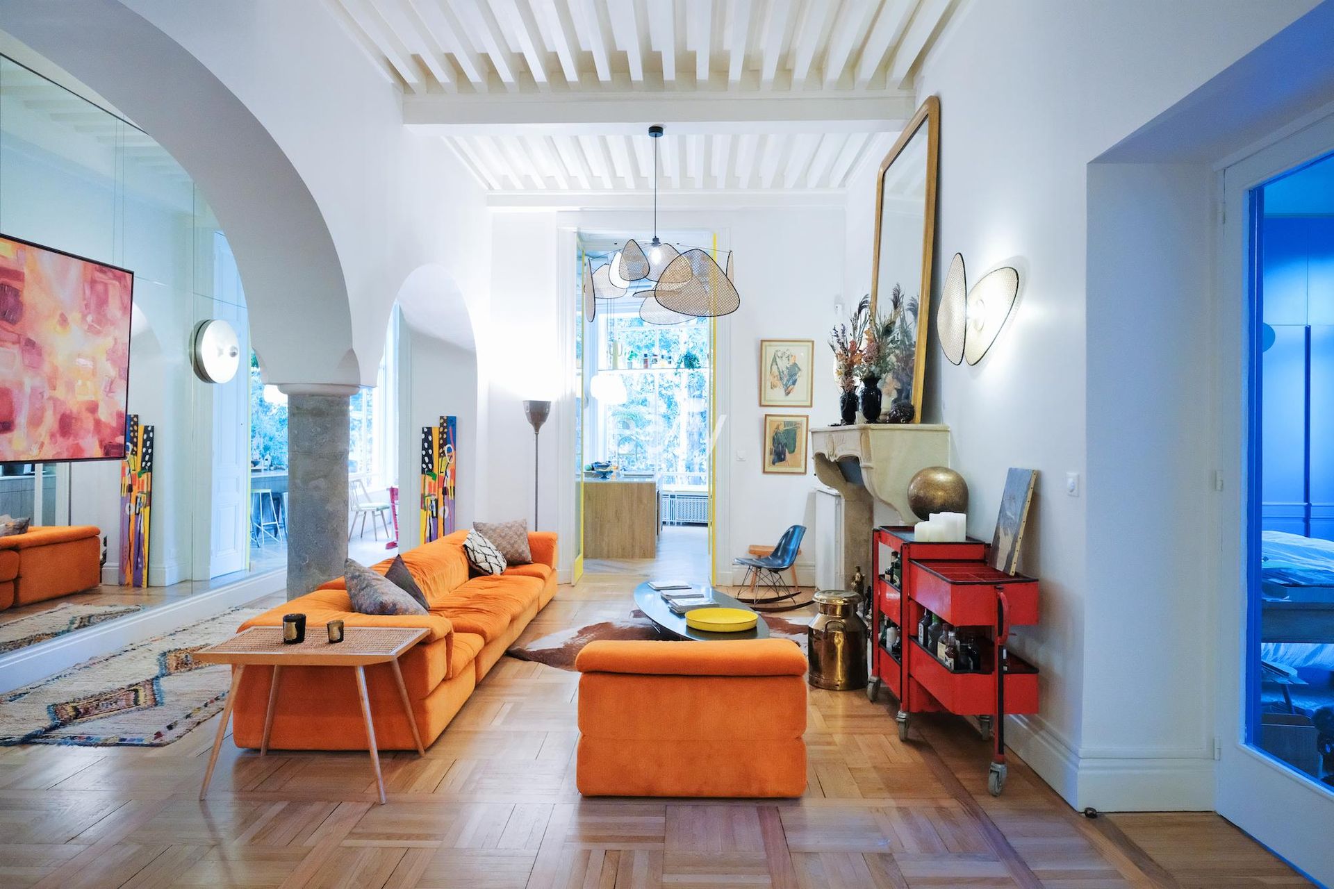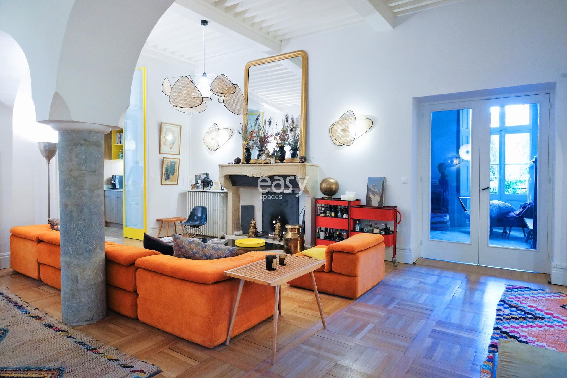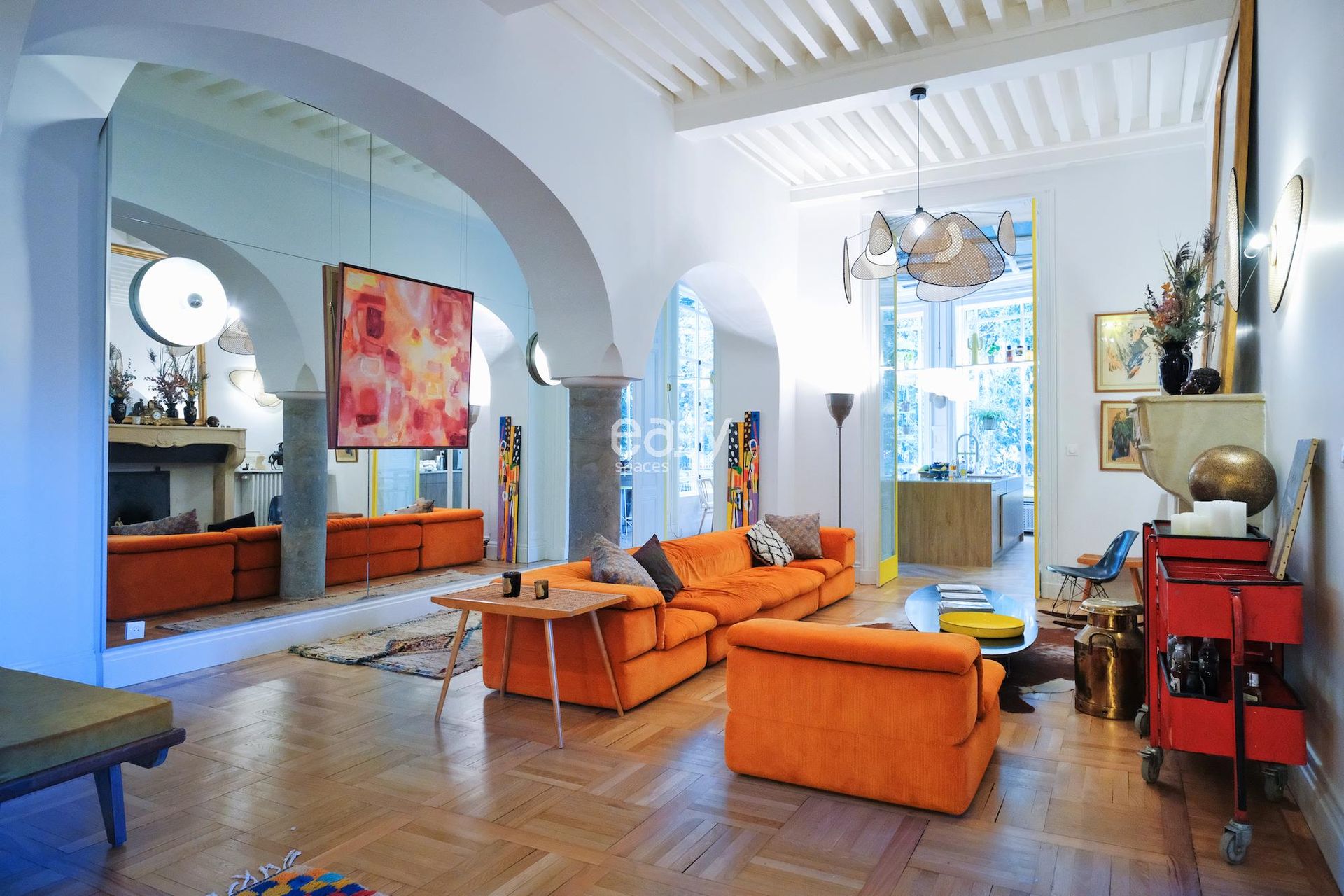 This unique location situated at the gates of Lyon features a contemporary and unusual 36m2 living area; its beautiful columns, vaults, ancient fireplace, and colorful decoration make it a very original shooting location.
