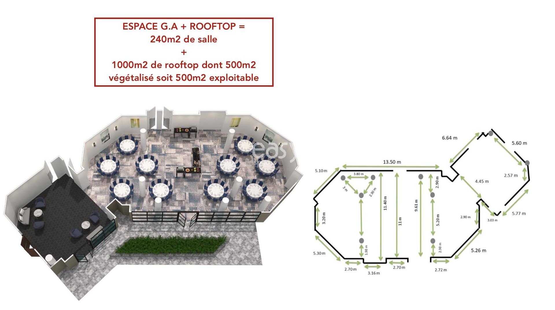 The rooftop allows you to organize outdoor events with a and the modern skyscrapers of La Défense. It is the ideal place for open-air photo sessions, outdoor shoots, or cocktails during product launches or corporate presentations. Its vibrant colors and comfortable seating bring a touch of conviviality while perfectly fitting into a sophisticated urban setting.