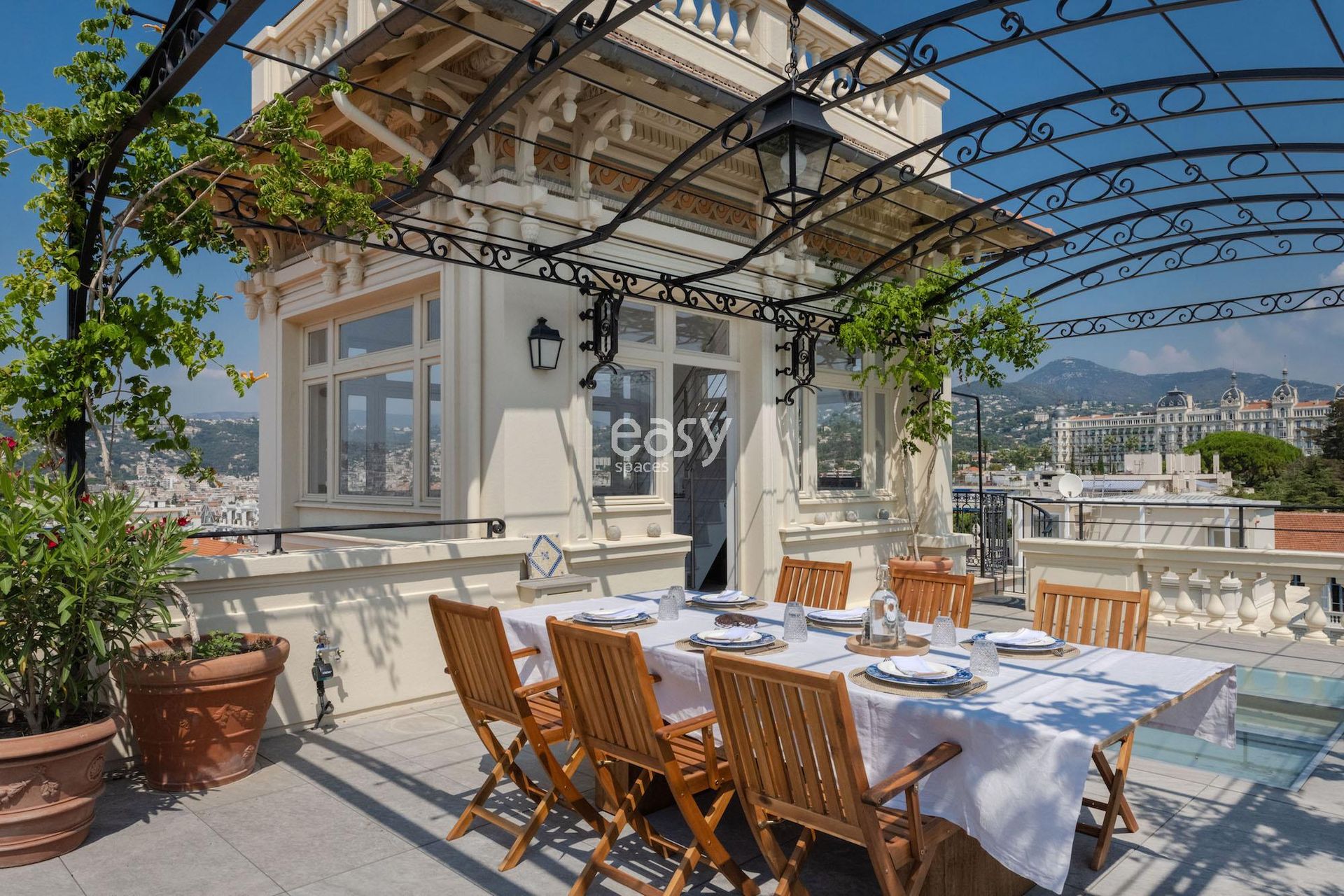 Located in Nice, this apartment in a Master House available for photo shoots is a true architectural gem, offering charm, comfort and an unobstructed sea view from its exclusive rooftop. From the moment you arrive, you will be captivated by its majestic appearance. Authentic details such as noble wooden floors and delicate moldings give a timeless character to this very bright 60m2 living room, thus creating a refined and unique atmosphere.