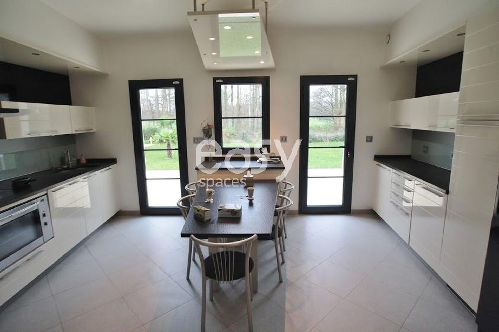 450m2 villa over 3 levels, 20m2 kitchen, 100m2 living room, 3 bedrooms of 20 and 23m2, 3 bathrooms, 2 offices, ceiling height = 2.80m