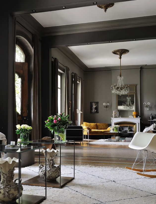 The decor, blending antique, modern, and vintage furnishings, creates a warm, authentic, and contemporary atmosphere, perfectly suited for editorial, advertising, or lifestyle productions.