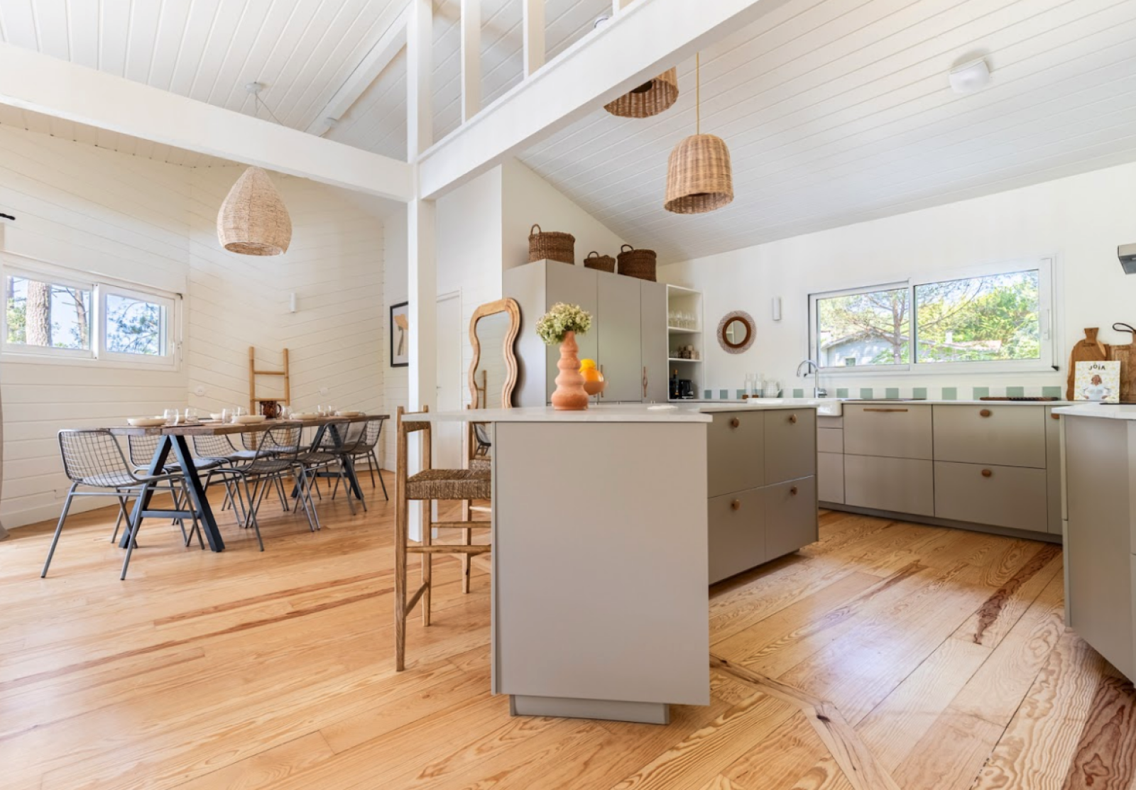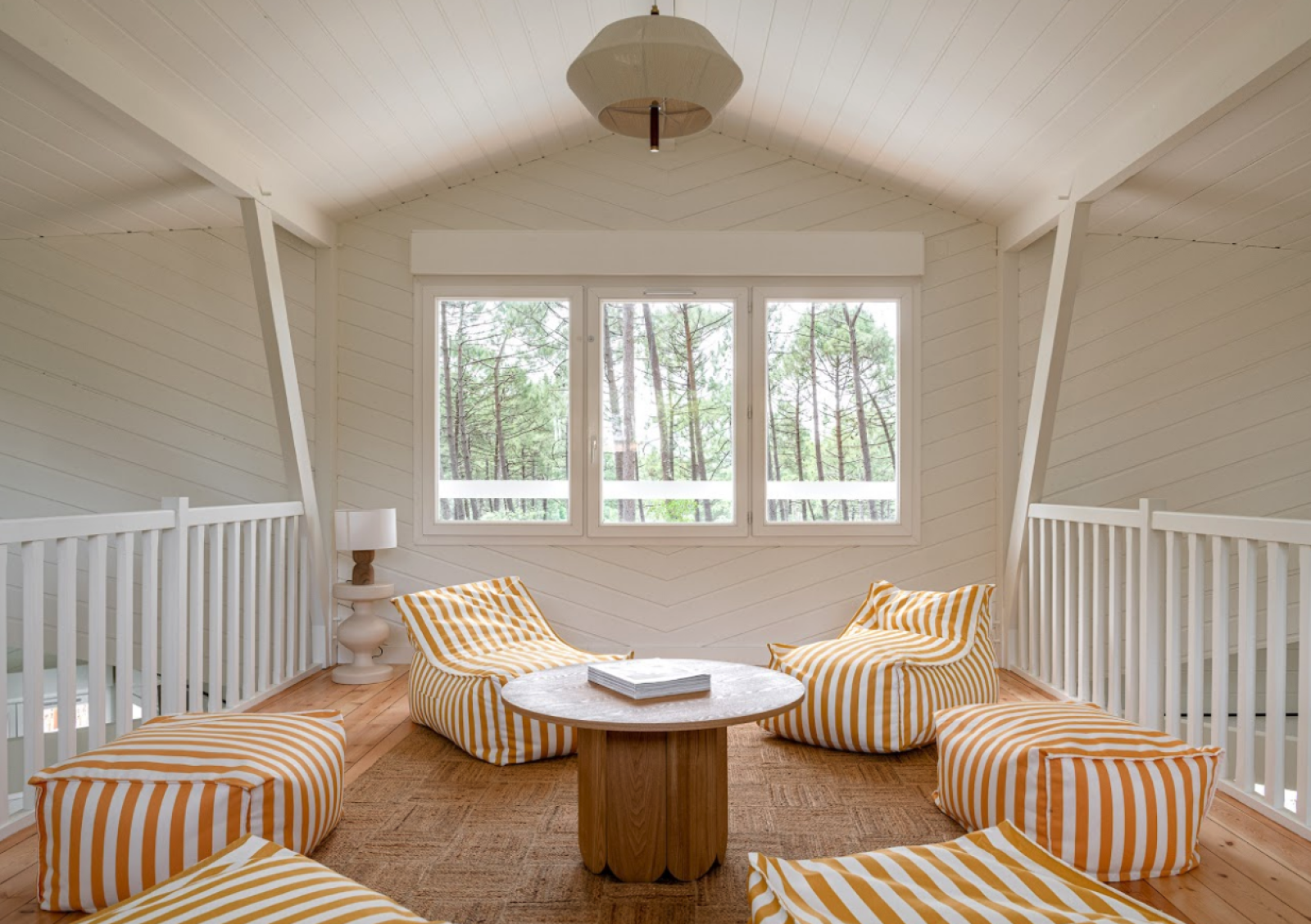 This traditional basque house in Lacanau, available for rent for professional photoshoots and events, is nestled in the heart of the pine forest in a natural and unspoiled setting.