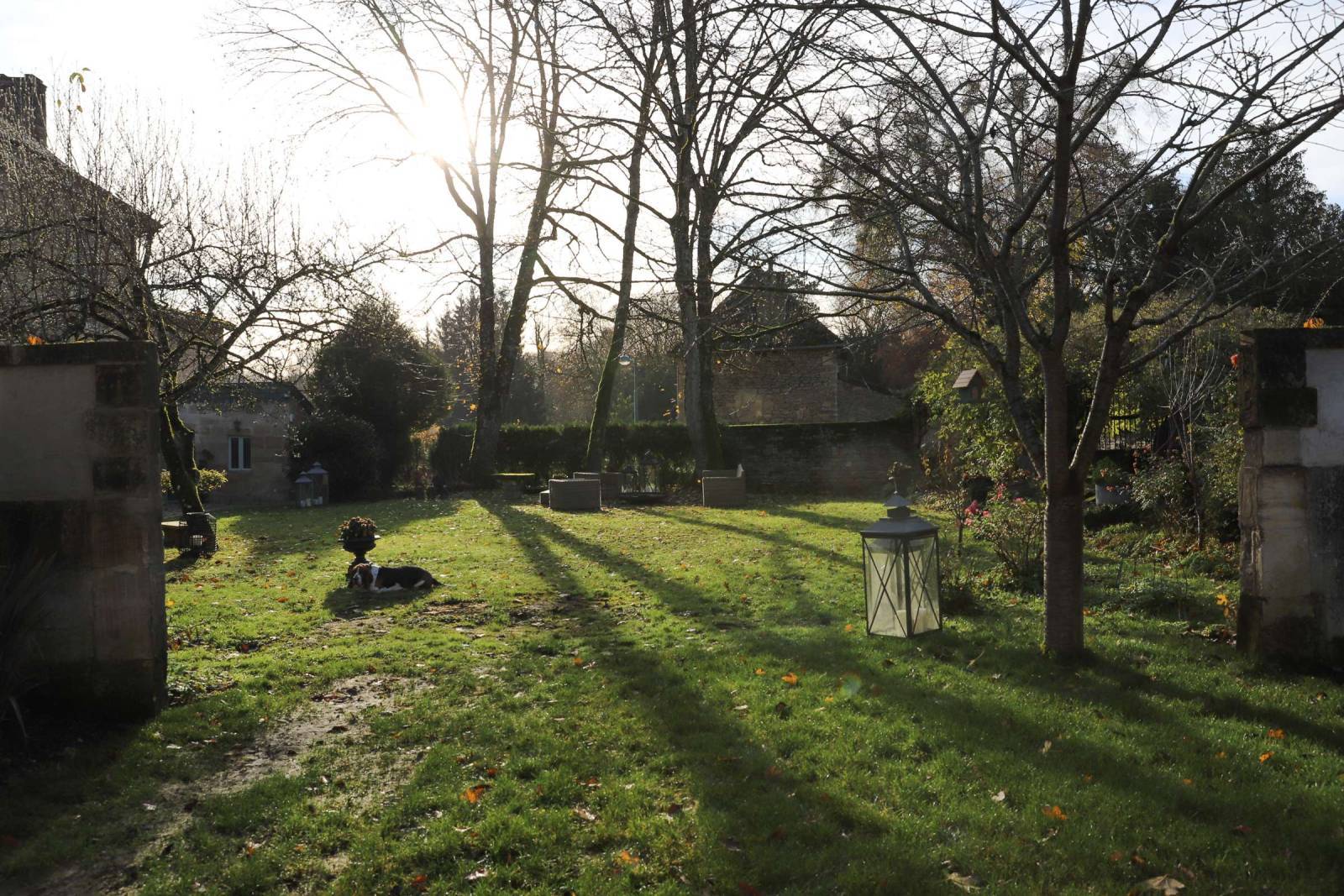 Outside, the main light-stone façade reflects the typical composition of 18th-century French residences, with a central pediment and large windows. The tree-filled garden of approximately 3000 m² opens wide perspectives and allows outdoor receptions or filming setups. The gravel courtyard simplifies logistics and access for technical vehicles.