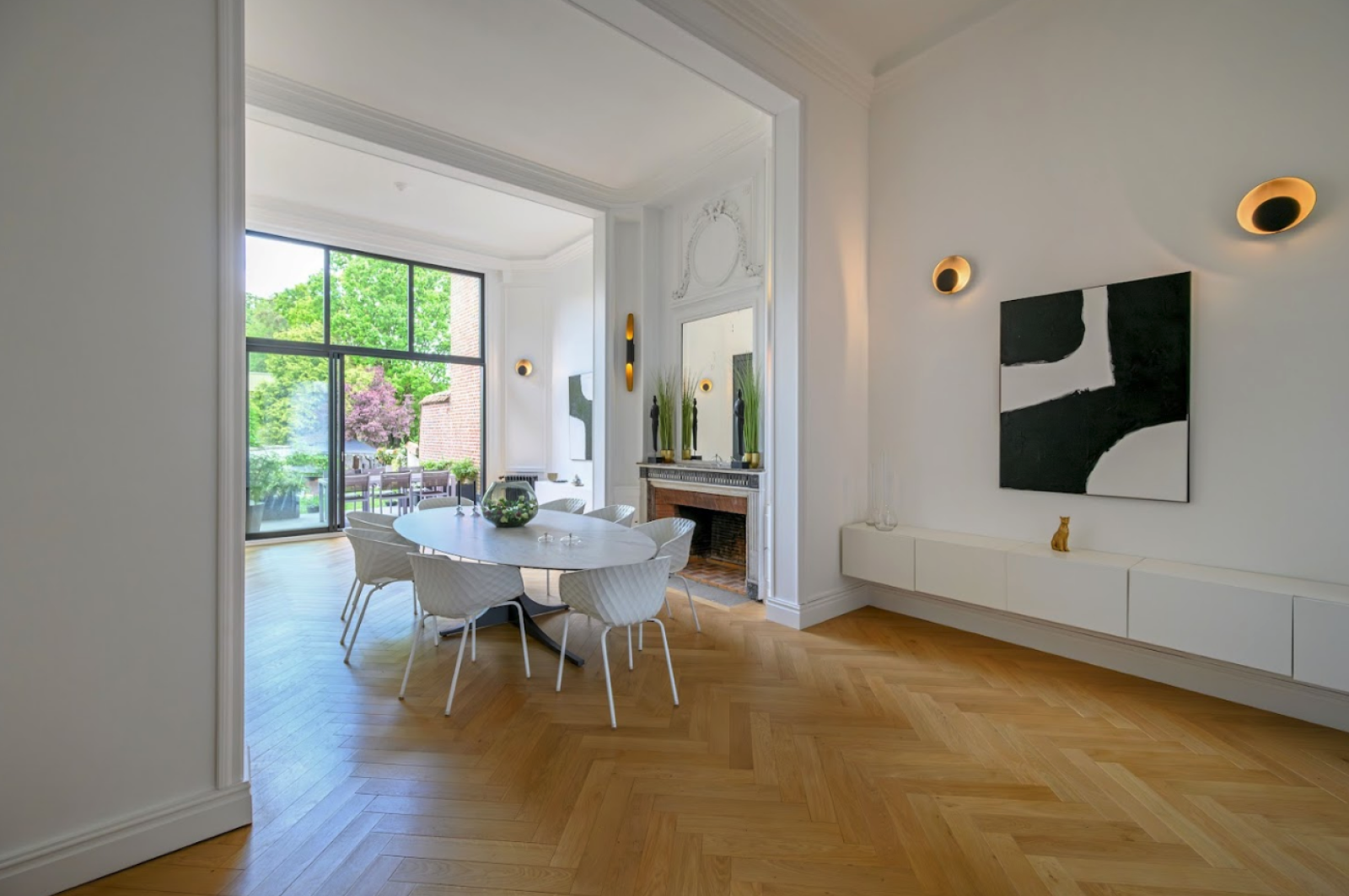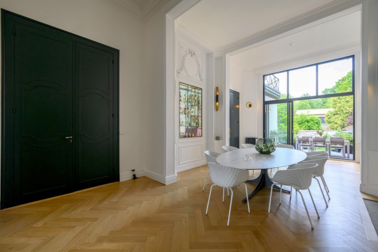 Outdoors, the 120 m² garden, terrace, and Nordic spa offer an attractive lifestyle dimension for photo shoots or more intimate events.