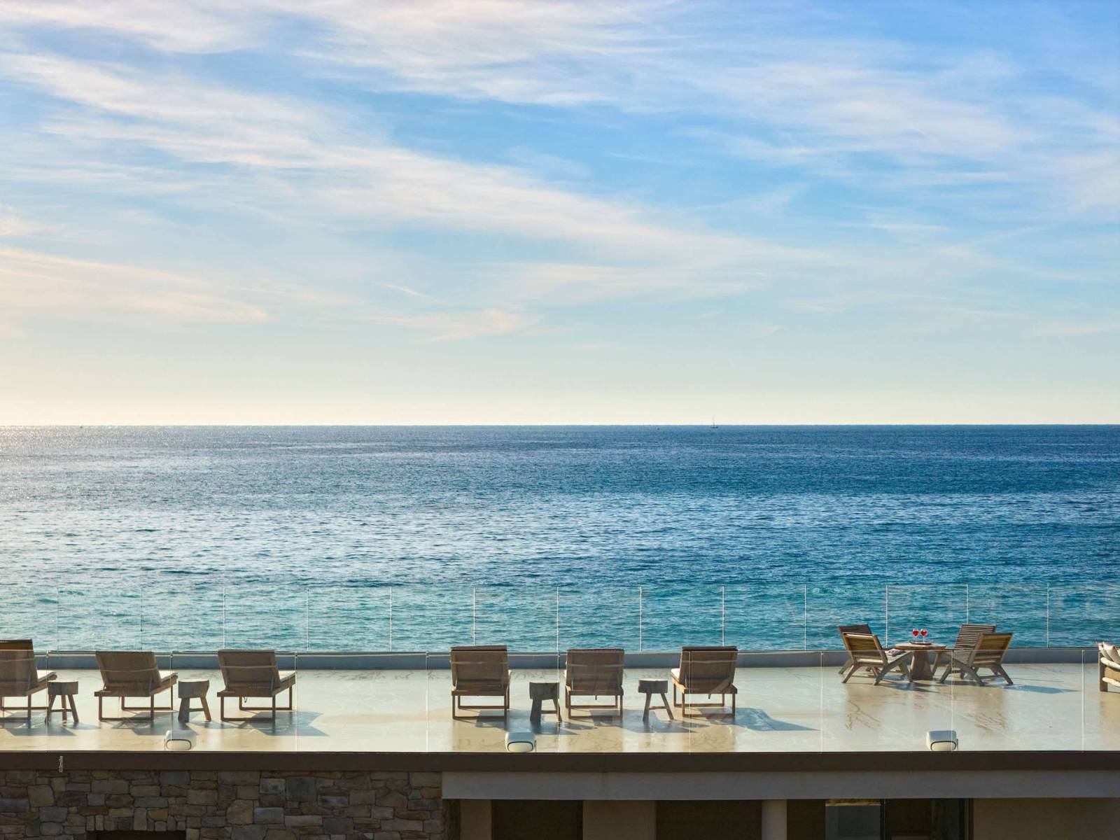 Discover the house: MILLIE, a sea-view villa where the sea takes center stage, featuring a terrace facing the horizon, a wooden-deck pool, and direct access to the sea.