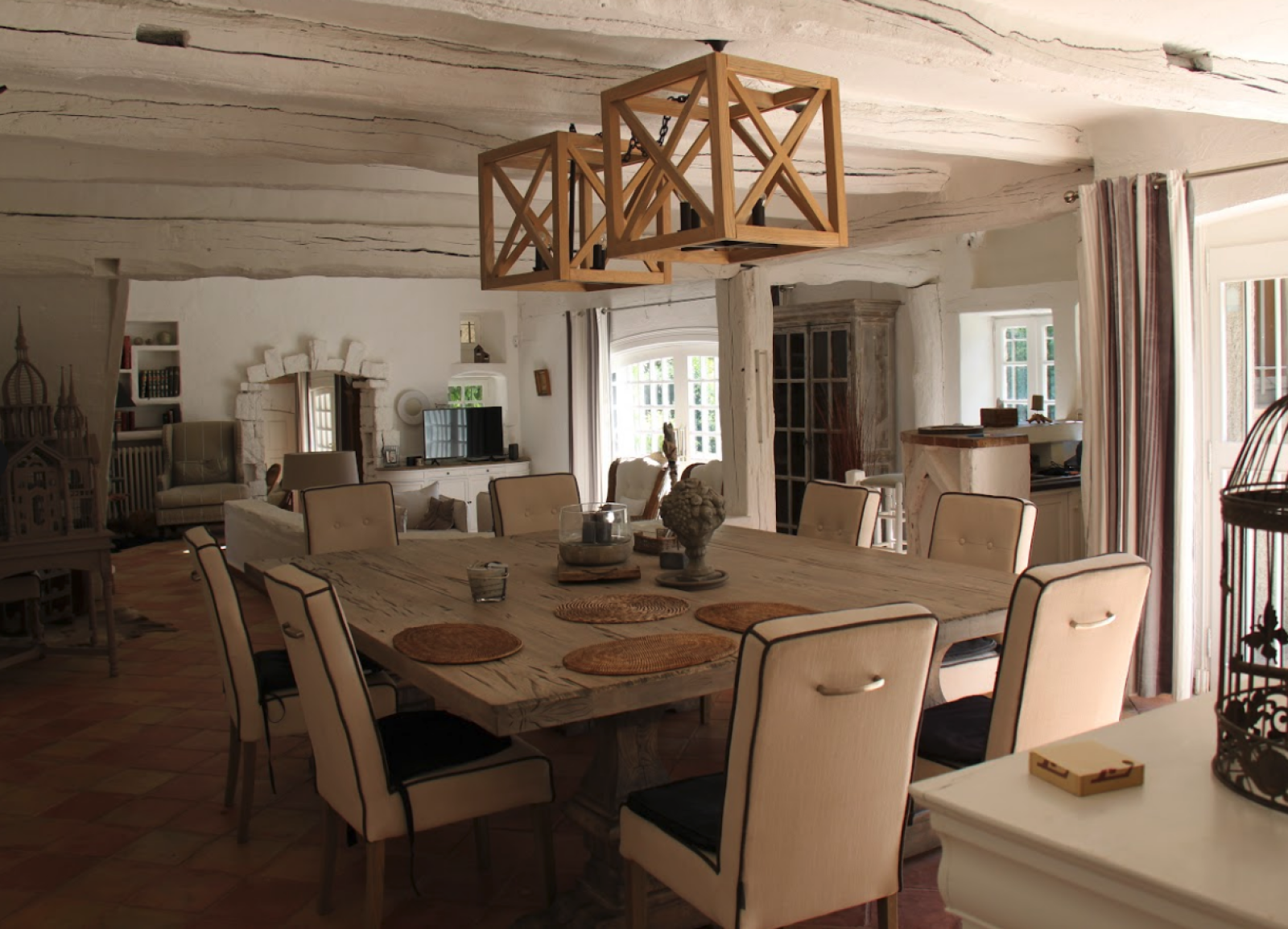 The chic, rustic décor, in neutral tones, creates a warm and elegant atmosphere, perfect for high-end productions.