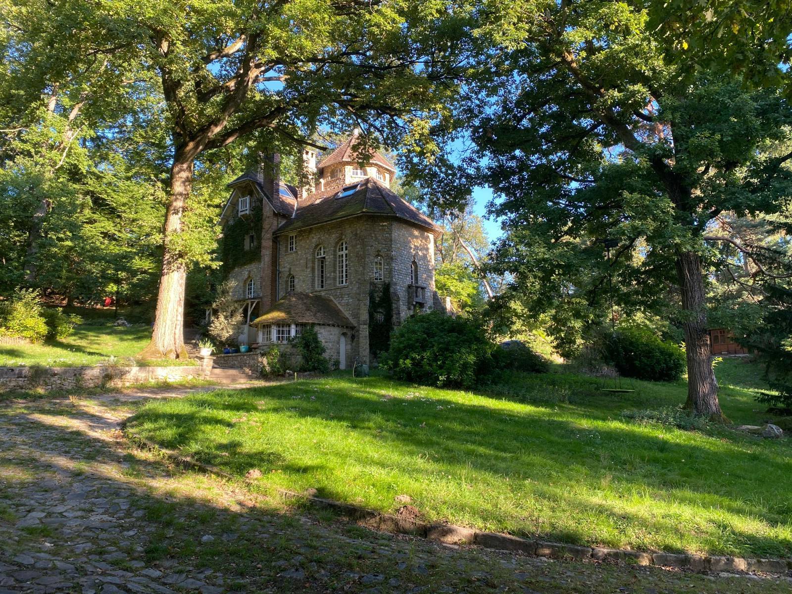 Yes. Exterior stone facade, terraces, wooded park, renovated interiors, and a more patinated zone — all within one address.