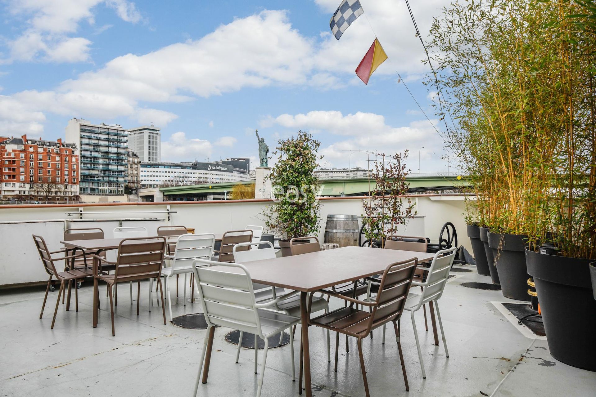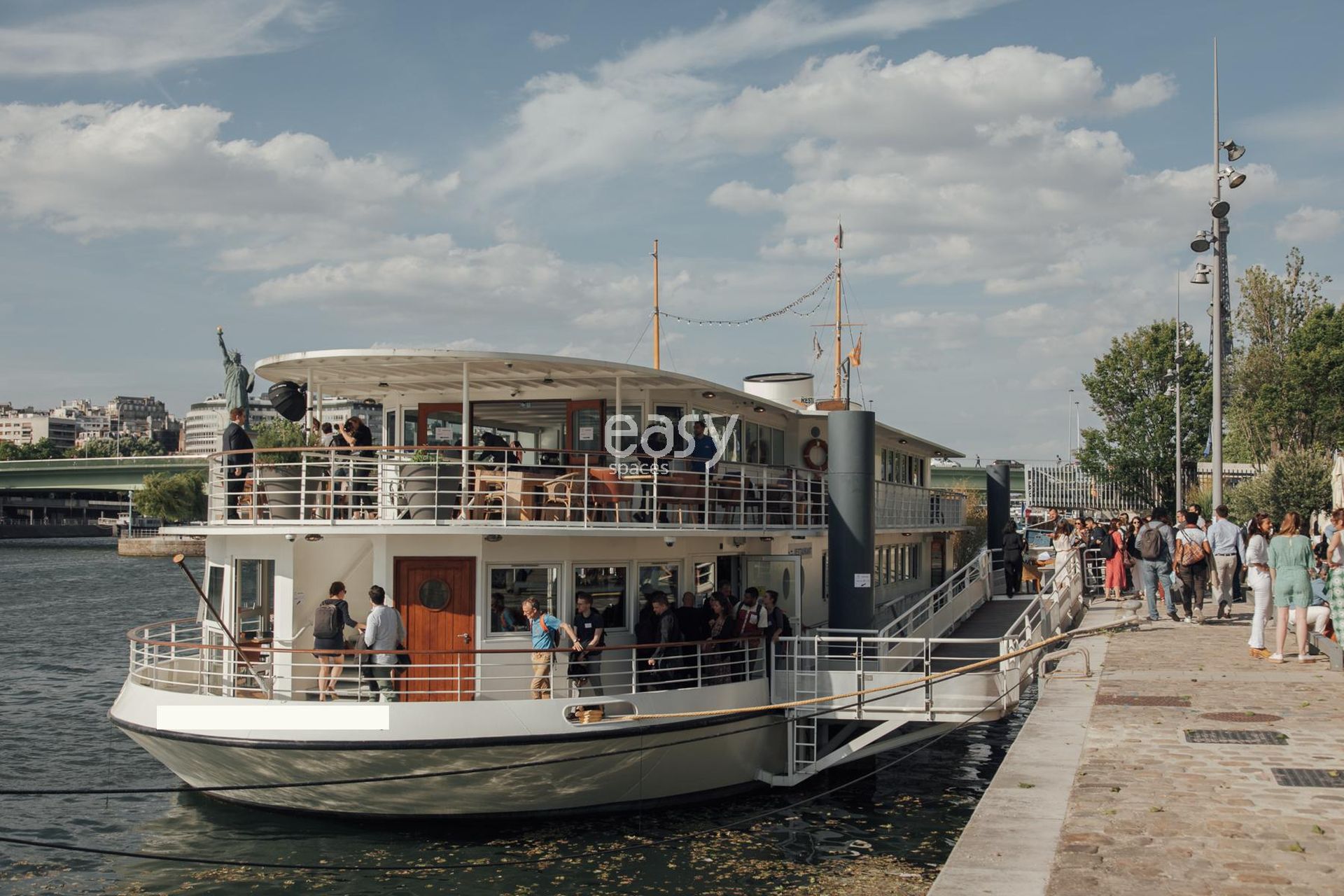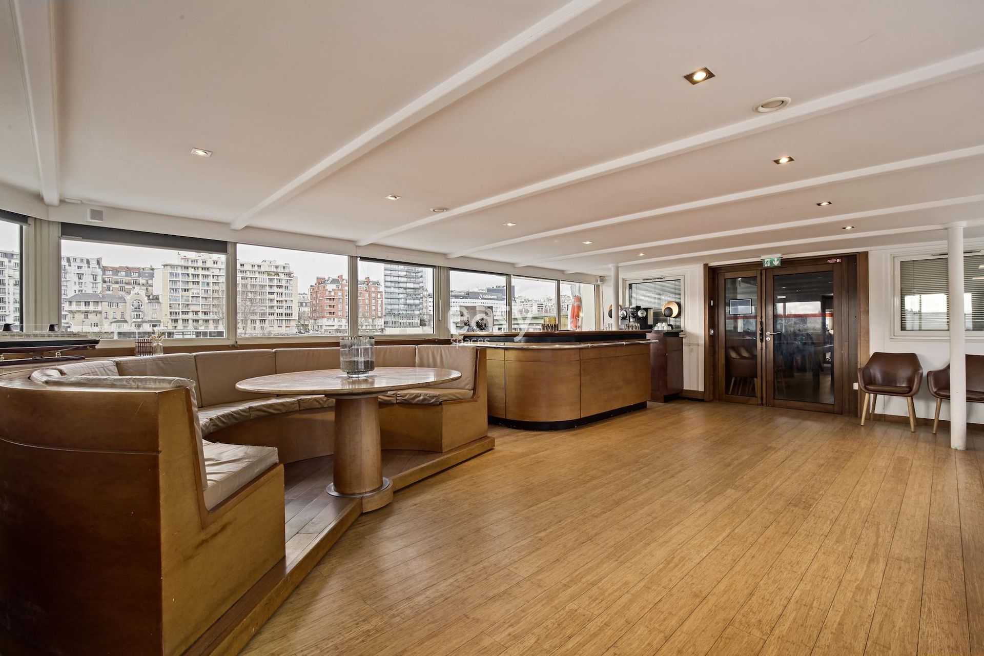 This highly photogenic setting is an unusual place that has superb assets for photo productions, film shoots, or advertising spot shootings. With its beautiful bright rooms and minimalist decoration, this houseboat benefits from both urban and Seine views, making it a perfect location for all types of photo shoots.
