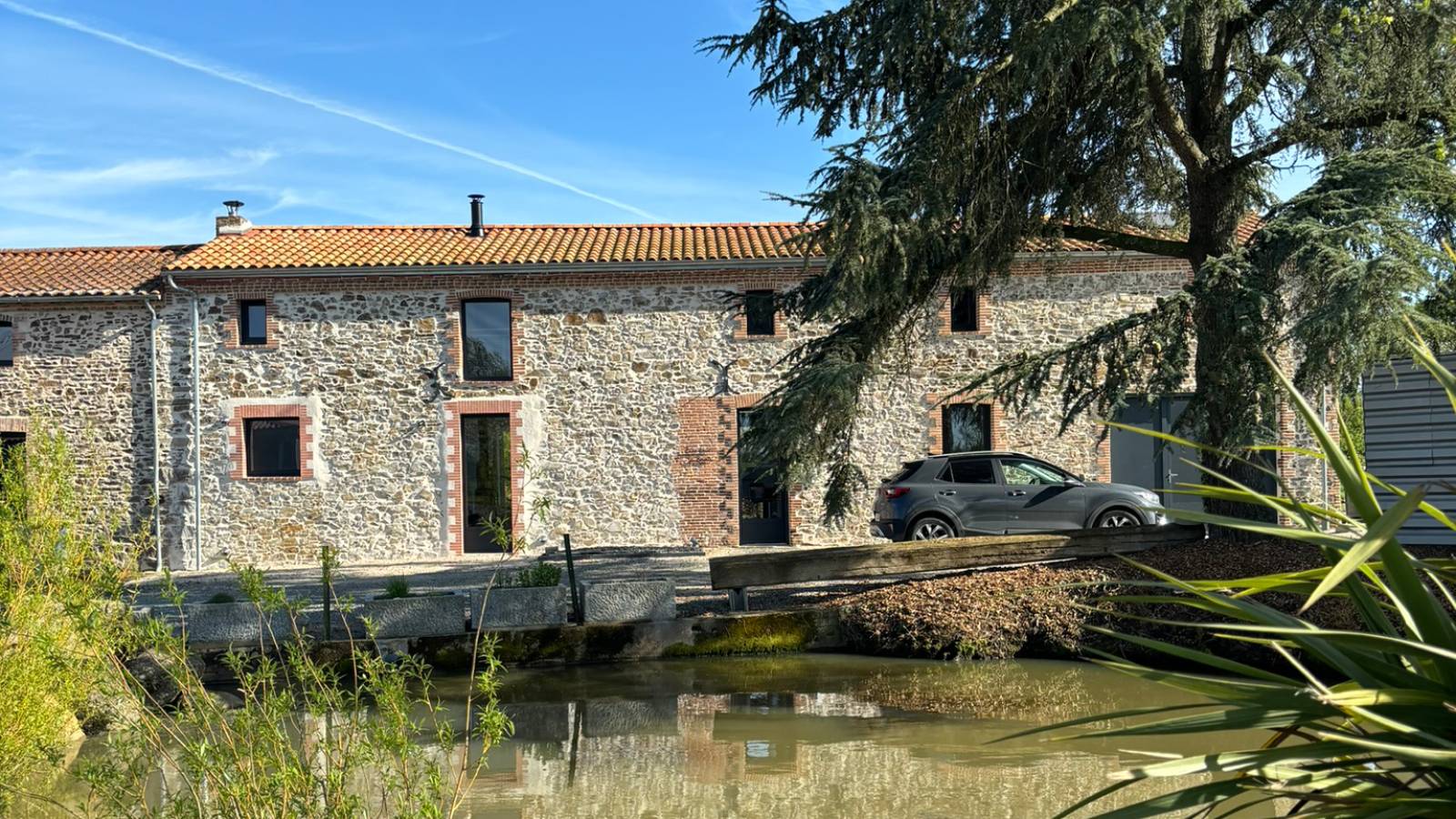 It offers a green and peaceful setting, with many possibilities for outdoor staging. A small pond completes this picturesque setting.