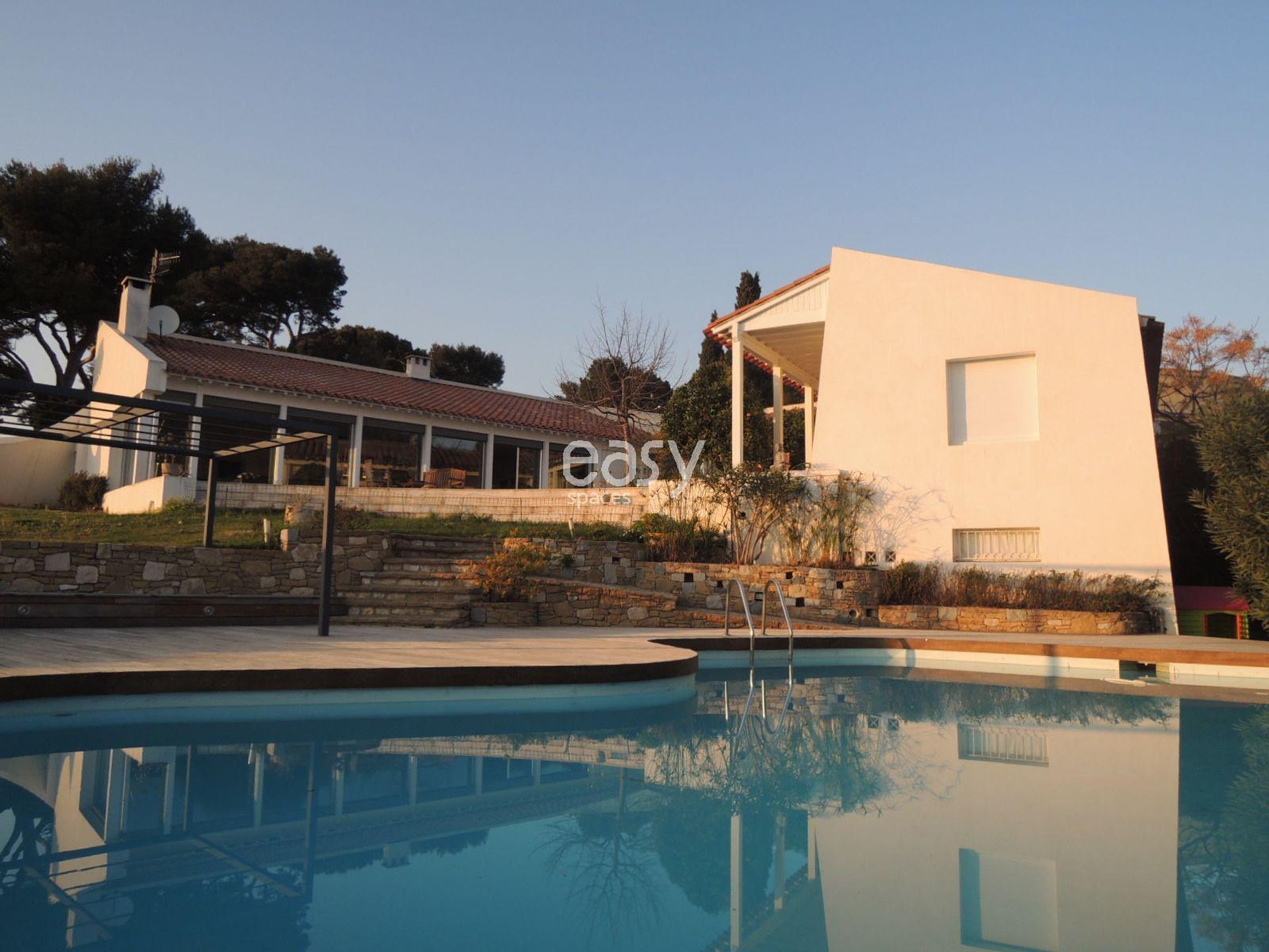 Modern house with swimming pool for rent near Marseille, featuring a magnificent sea, mountain, and hill view, and numerous terraces. Villa located in the south of France, in the Bouches du Rhône in the PACA region.