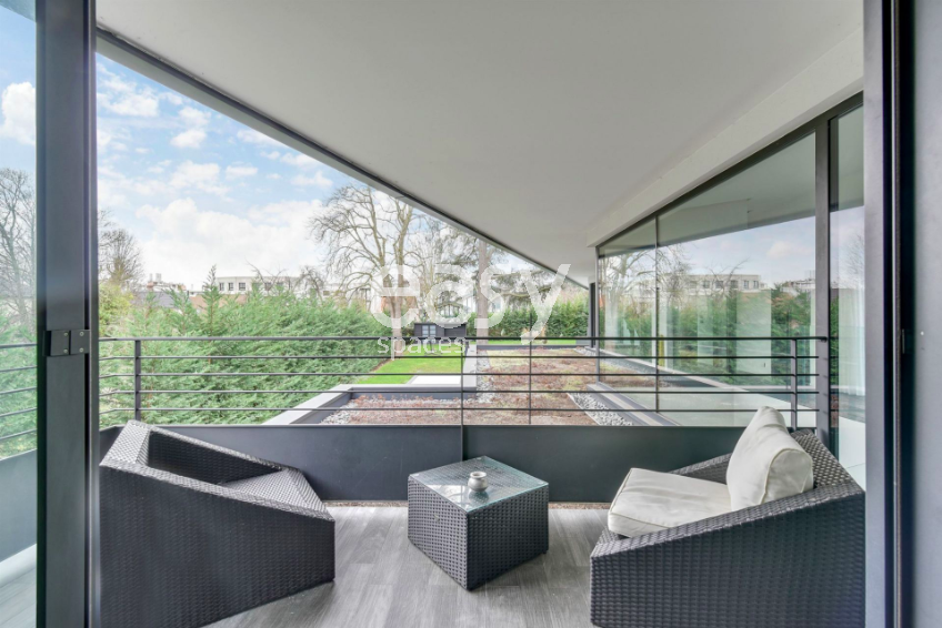 Located in the close Paris suburbs, this pretty architect-designed house with swimming pool features modern decoration, a bright 75m2 living room as well as a very nice 1000m2 garden space.