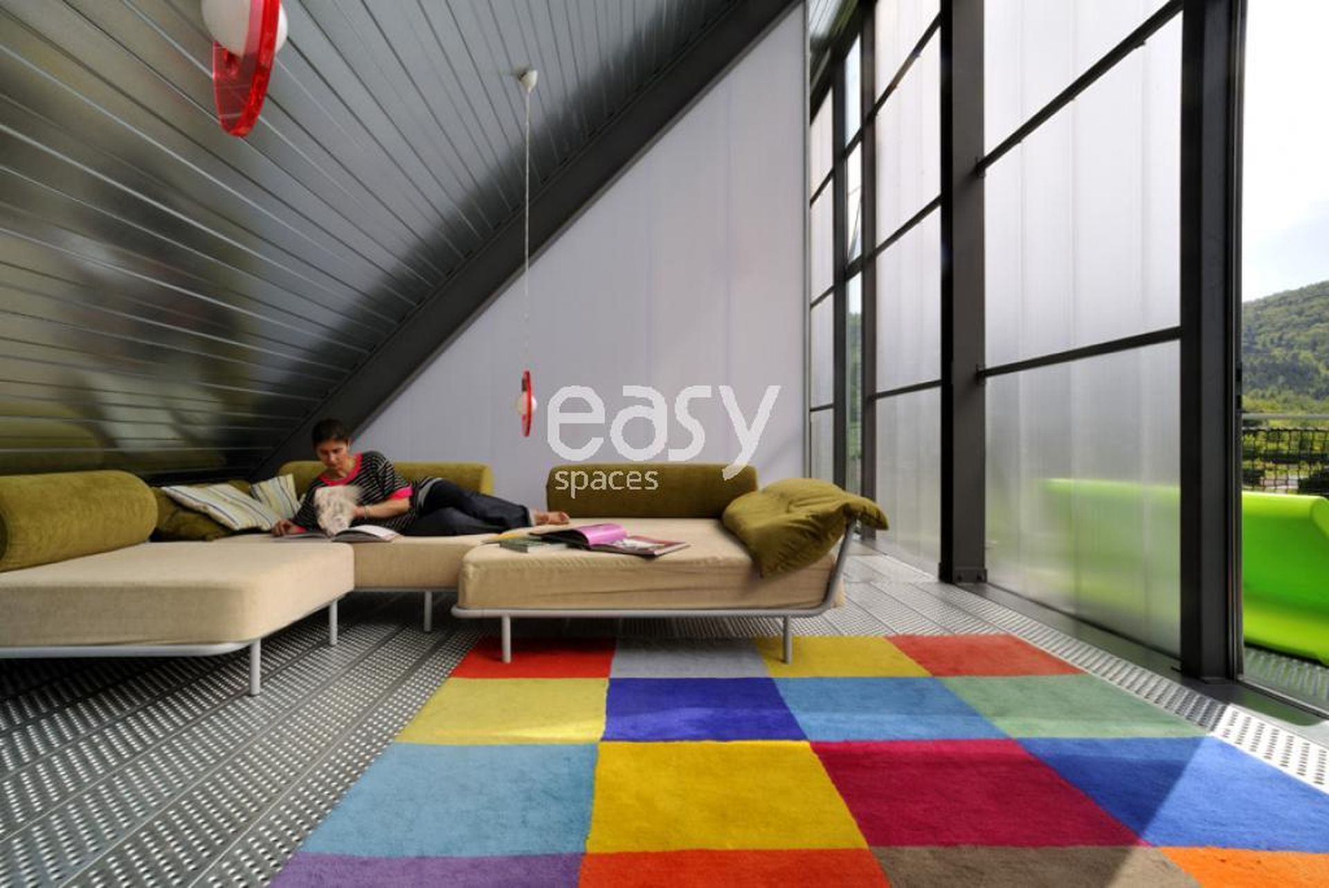 This unique space is nestled in a green setting, offering an impressive environment with a ceiling height of 10m and a decoration that is both contemporary and colorful, designed to inspire creativity. Enjoy a spectacular view of the valley to add a magical touch to your production or event.