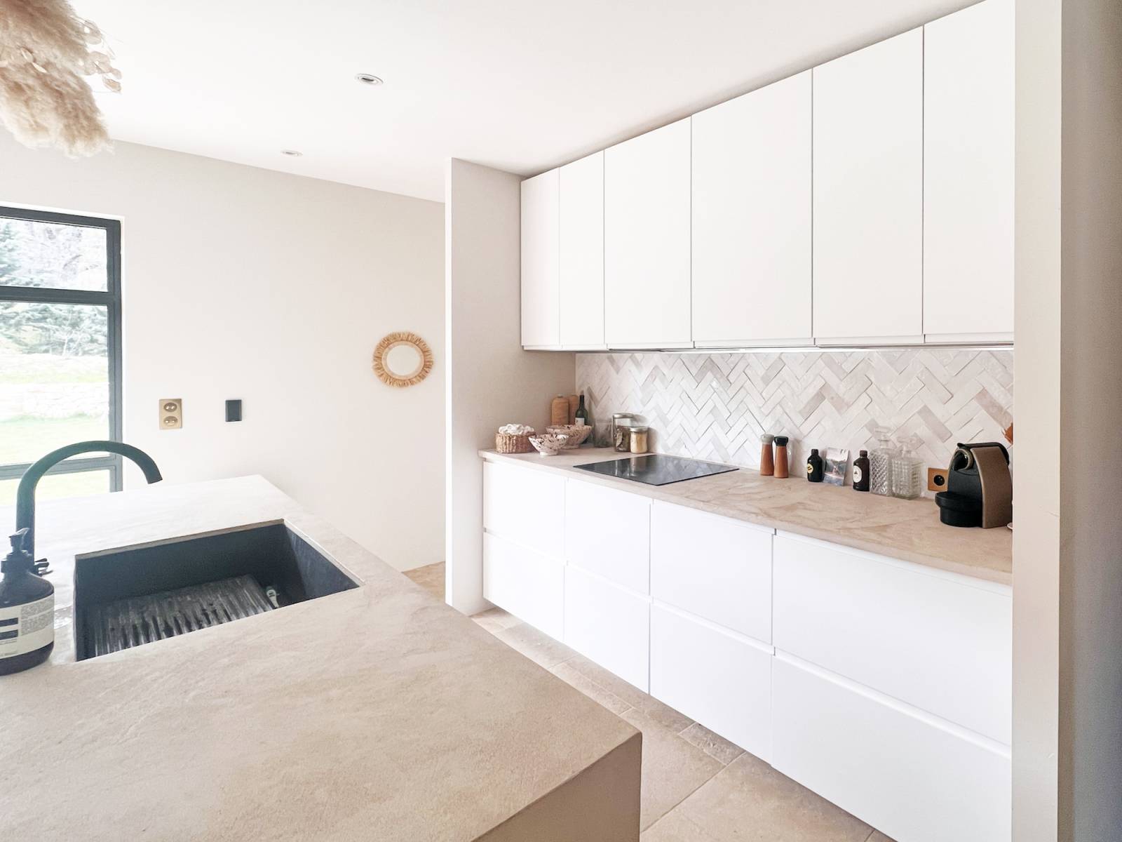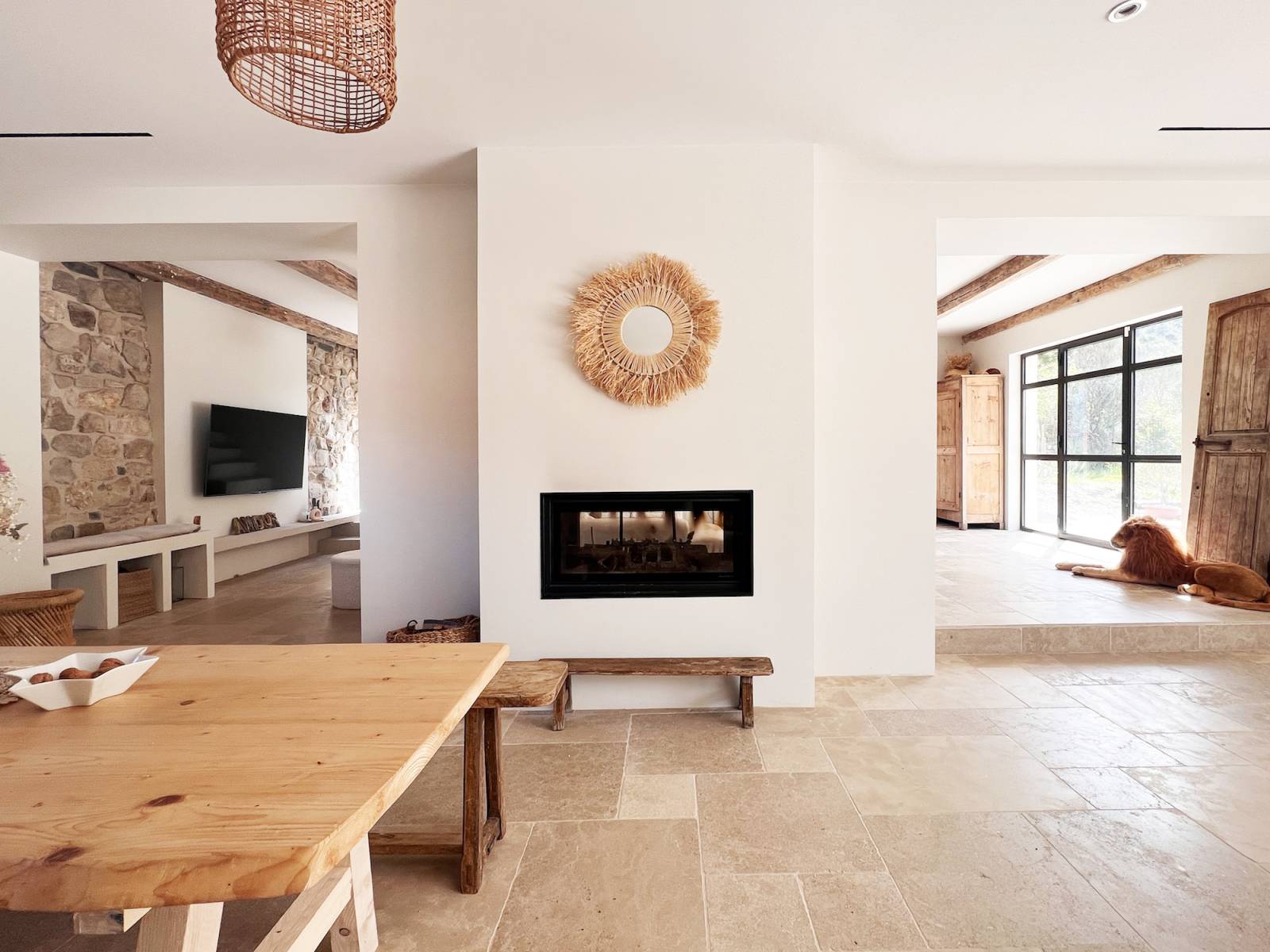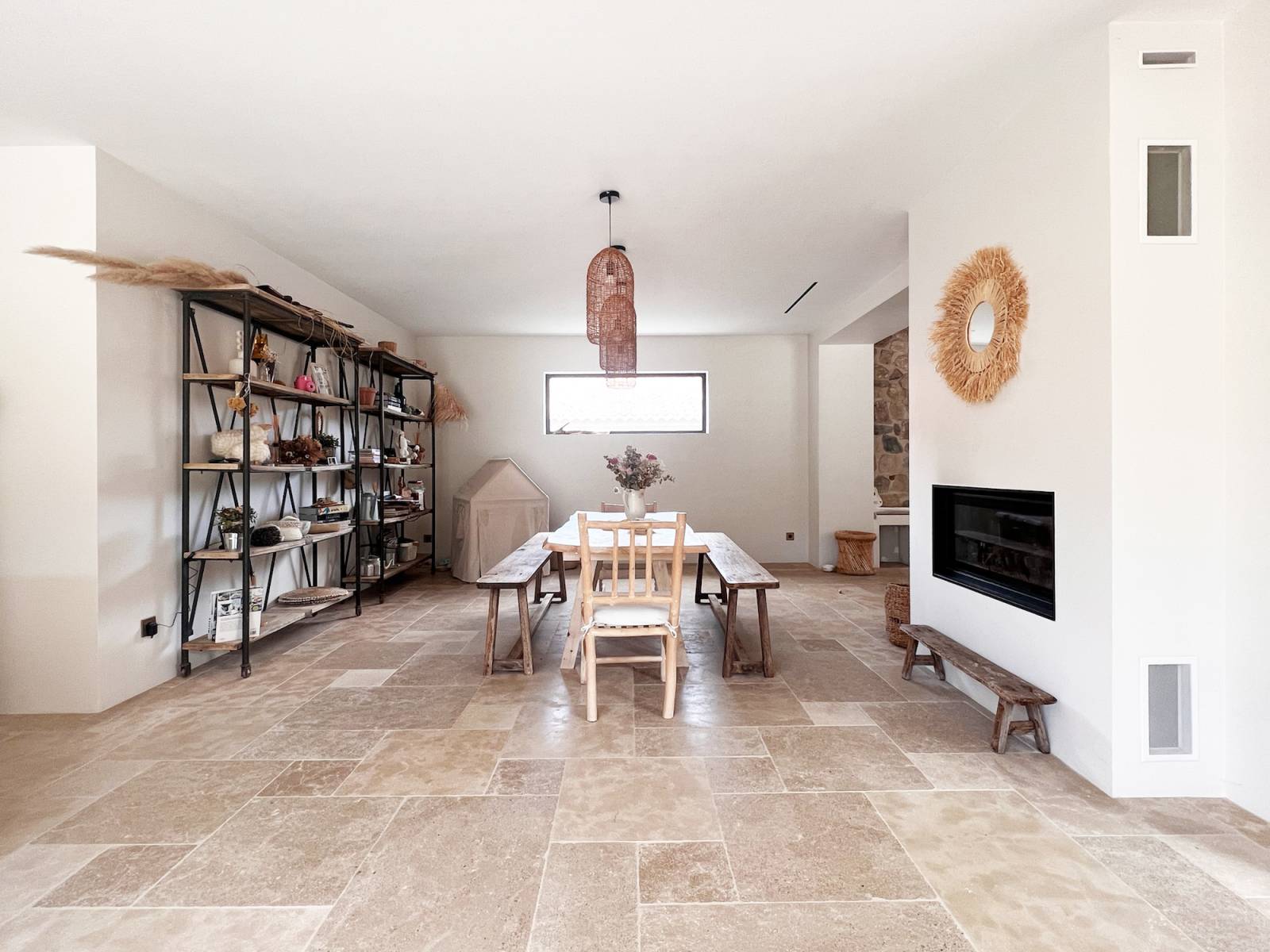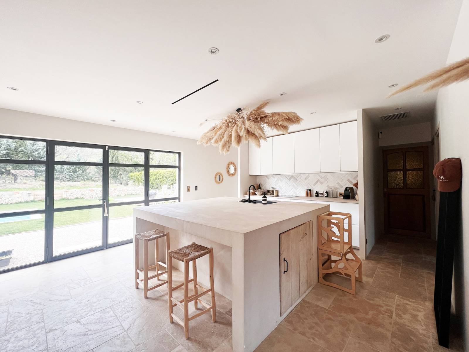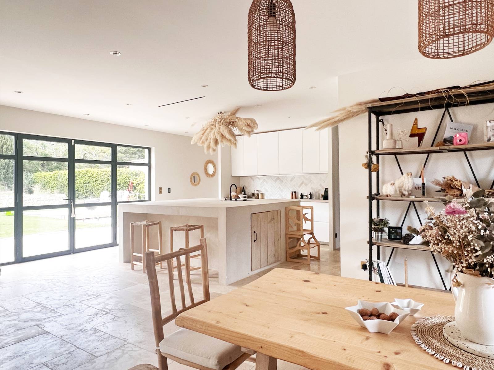 Inside, its large 80m2 living room is bathed in natural light thanks to the large bay windows that open onto the terrace, and its bohemian and cozy decor will allow multiple atmosphere creations for your photo shoots.
