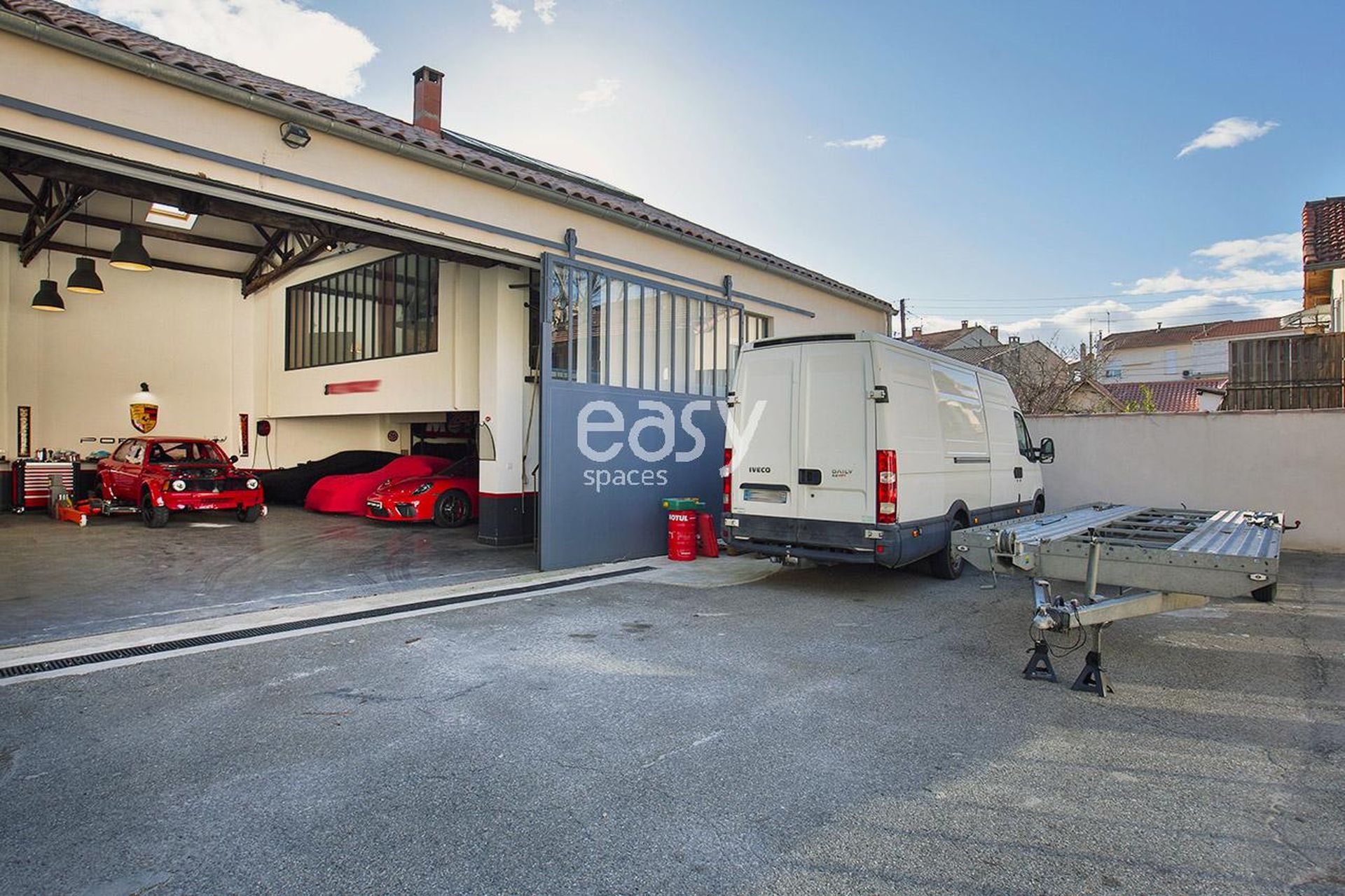 This exceptional 250m2 modular space, with a 90m2 mezzanine loft, an automatic gate, and easy access for trailers and vans, is perfect for any type of event or artistic project.